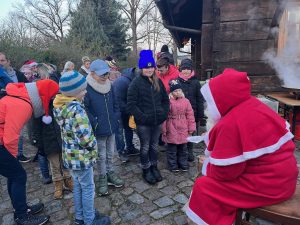Die Jüngsten wurden zu einer Kremserfahrt eingeladen und Axel wusste ganz genau, dass am Hafen eine Überraschung auf sie wartete. Zur Freude aller kam der Weihnachtsmann mit dem Kahn angefahren. Gemeinsam kehrten sie dann zu den anderen zurück, wo es für jedes Kind ein kleines Präsent gab. Der neue Betreiber des Gasthauses „In Mühle“ öffnete an diesem Nachmittag zum ersten Mal seine Türen und hieß die Gäste herzlich willkommen. Er bereitete mit fleißigen Helfern eine leckere Fleischpfanne zu, grillte Würstchen und sorgte für die Erfrischungsgetränke. „Das war ein schöner Adventsnachmittag“ – so die Meinung aller.