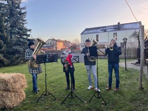 Am Nachmittag des 2. Adventssamstages lud der Traditionsverein zum kleinen Schmaus und Umtrunk ein. Wie in den letzten Jahren wurde die alte Kochmaschine zum Aufheizen des Glühweins und Kinderpunsch` genutzt. Dem Duft der frisch gebackenen Grabbelchen konnte keiner widerstehen. Wer noch ein kleines Präsent suchte, konnte Sterne und individuell gestaltete Teelichter erstehen. Die weihnachtliche Stimmung wurde durch die musikalische Umrahmung der kleinen Kapelle der Musikschule verstärkt.