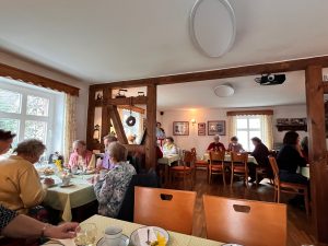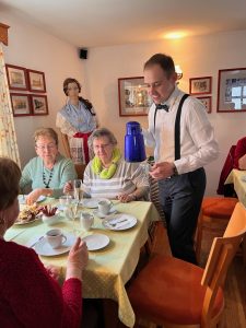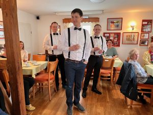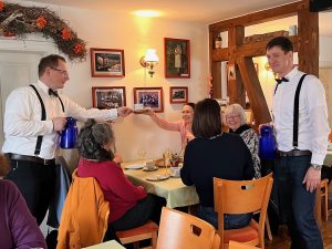 Ein Begrüßungssektchen, dann Kaffee und Kuchen – das war lecker! Dass drei schick zurechtgemachte Herren die Bedienung am Samstag übernahmen, war noch ein Sahnehäubchen obendrauf. Marcel Galkow, Toni Oldenburg und Andreas Mietk verwöhnten die Frauen im Hanschkow-Haus mit Charme und süßen Leckereien. Alle Plätze waren besetzt, das zeigt, dass die Alt Zaucher- und Burglehnerinnen dieses Frauentagsgeschenk zu schätzen wussten. Die Idee kam ursprünglich von Linda Orbanz und Aileen Galkow, die sich auch emsig für die Fastnacht engagierten. DANKE für diesen Impuls, DANKE den jungen Männern, die zum Abschluss noch die Gläschen mit leckerem Eierlikör und Kirsch auffüllten. Die Damen waren alle durchweg begeistert, dies wurde im Nachhinein mehrfach betont. Wir glauben, das könnte eine schöne Tradition im Dörfchen werden. 🙂
